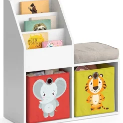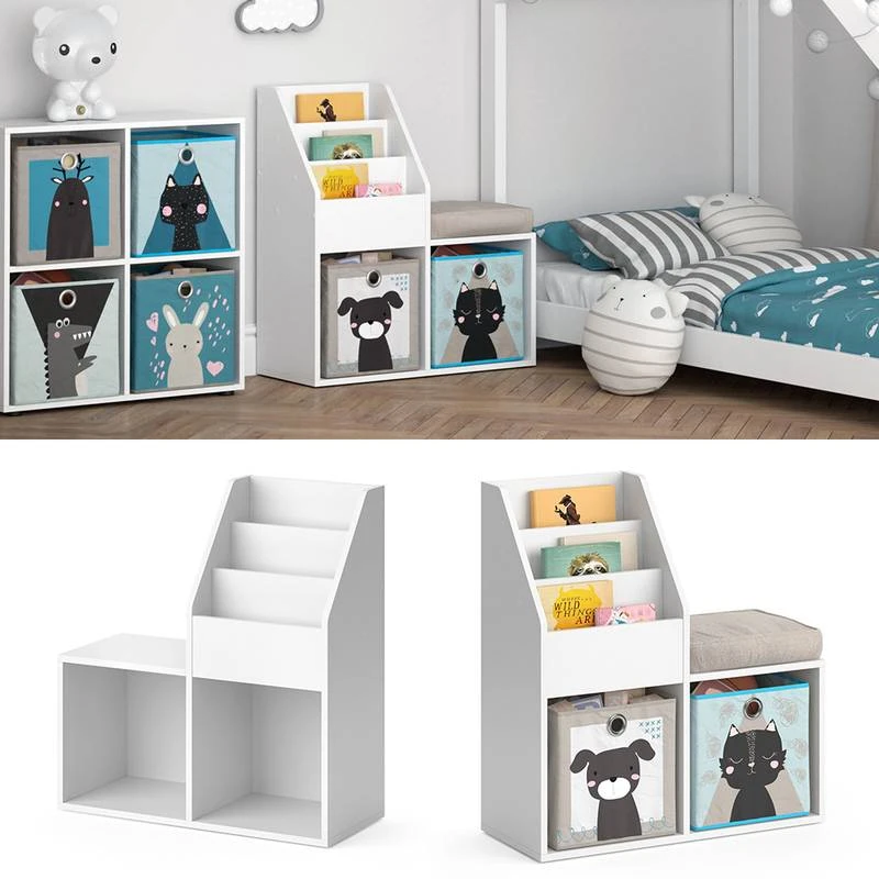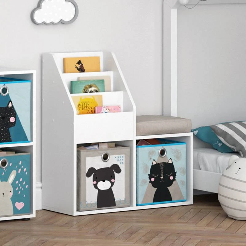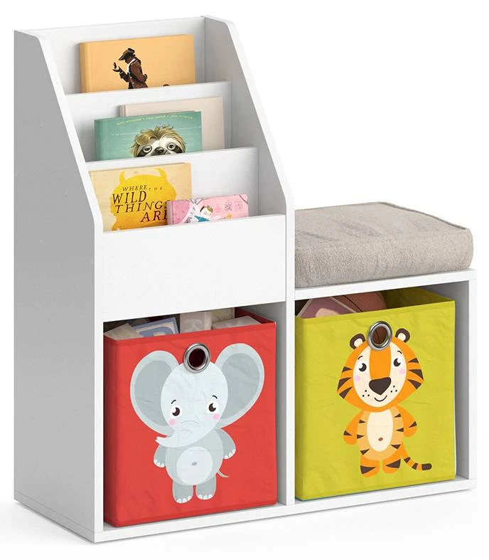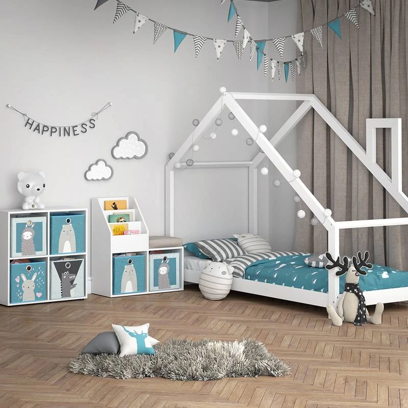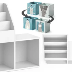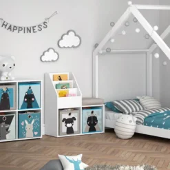 - Contenu de la livraison : • 1x bibliothèque• 1x boîte pliable à motifs (éléphant, panda)• 1x boîte pliable à motifs (tigre, girafe)Boîtes pliables et décoration non incluses