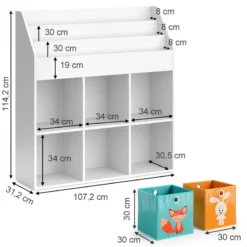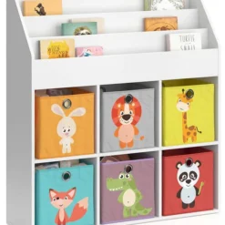 - Contenu de la livraison : • 1x bibliothèque• 1x boîte pliable à motifs (éléphant, panda)• 1x boîte pliable à motifs (tigre, girafe)• 1x boîte pliable à motifs (lapin, chat)• 1x boîte pliable à motifs (hippopotame, renard)• 1x boîte pliable à motifs (lion, ours)• 1x boîte pliable à motifs (crocodile, phoque)Boîtes pliables et décoration non incluses