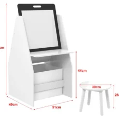 - Contenu de la livraison : 1 x bureau avec tableau blanc – 1 x tabouret – 1 x boĂźte pliable – 1 x notice de montage