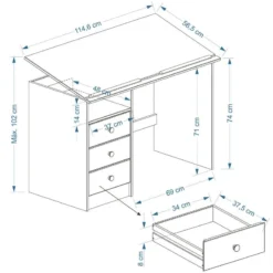- Contenu de la livraison : 1 x KEVIN Bureau enfant