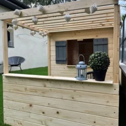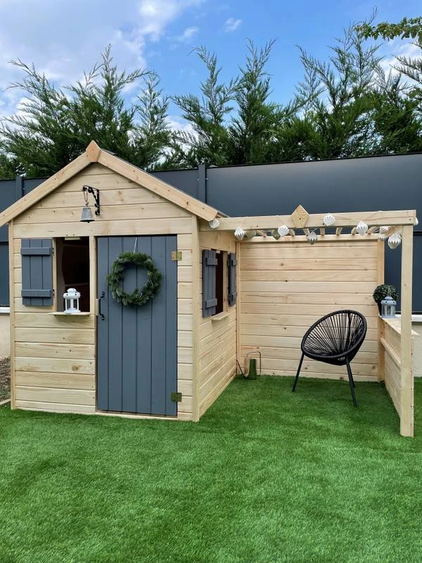 - Contenu de la livraison : 1x cabane 1x pergola 3x volets 1x porte 1x toit schingel