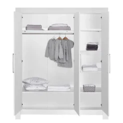 - Contenu de la livraison : Lit évolutif, pans de transformation, commode à langer avec plan à langer amovible, armoire 3 portes
