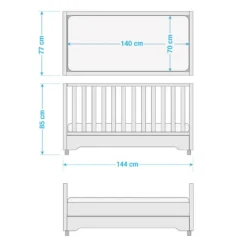 - Contenu de la livraison : Lit évolutif, pans de transformation, commode à langer avec plan à langer amovible