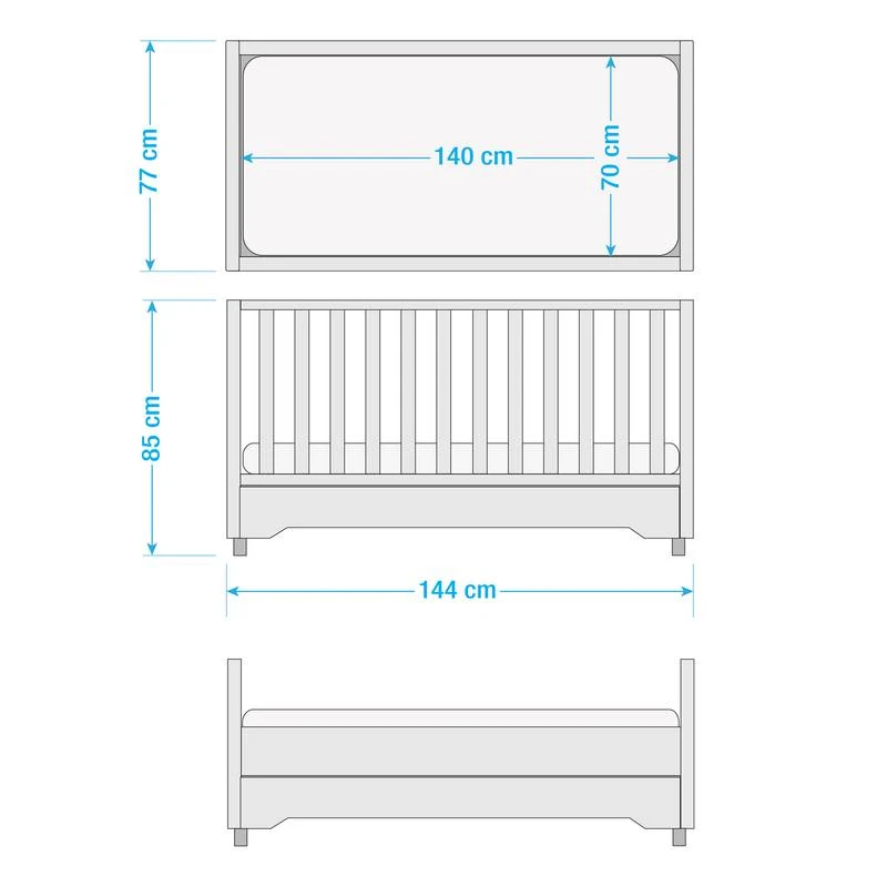 - Autres dimensions : Lit : L : 77 cm H : 85 cm L : 144 cm (*) Commode Ă langer L : 115 cm H : 101 P : 53 cm