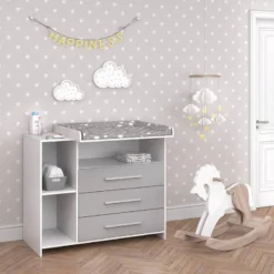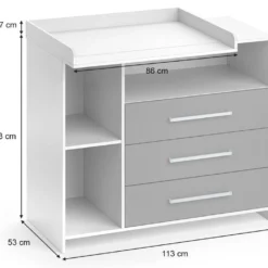 - Contenu de la livraison : ⹠1x commode à langer avec plan à langerDécoration non incluse