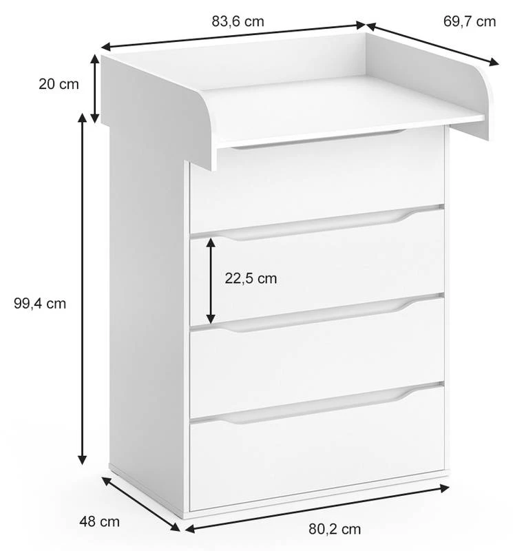 - Contenu de la livraison : ⹠1x commode à langer Décoration non incluse