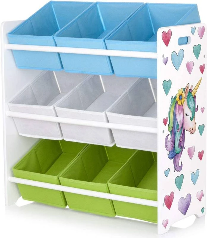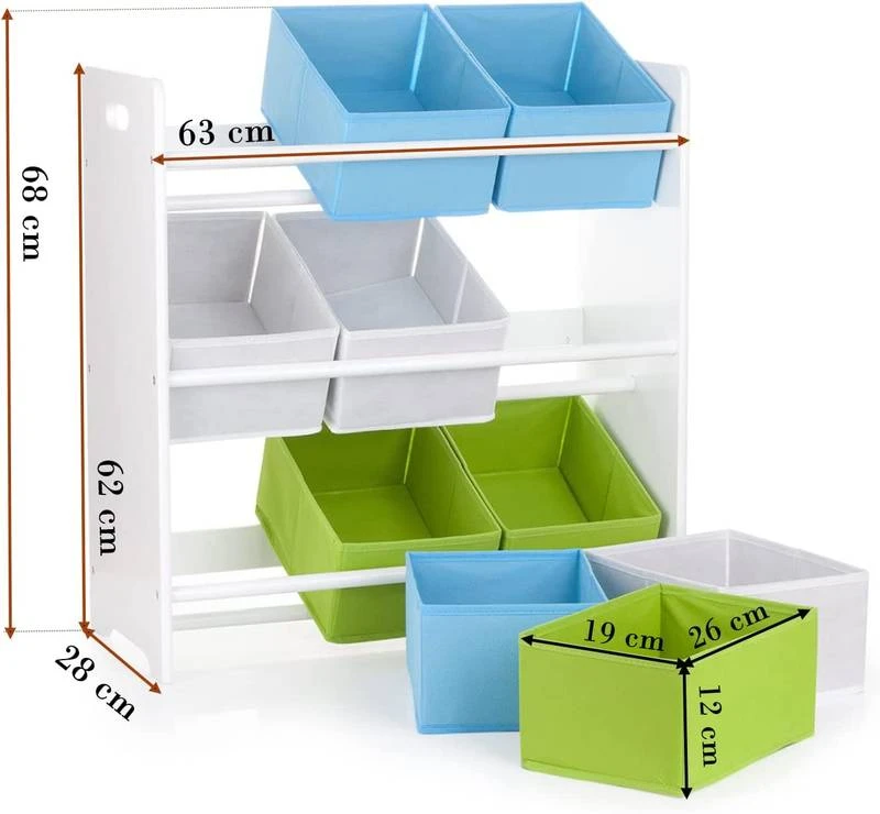 - Contenu de la livraison : Étagère, 9 bacs en tissu