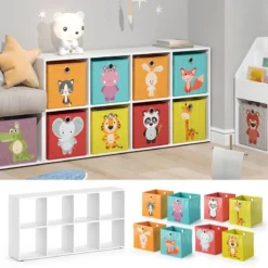 - Contenu de la livraison : • 1x séparateur de pièce• 1x boîte pliable à motifs (éléphant, panda)• 1x boîte pliable à motifs (tigre, girafe)• 1x boîte pliable à motifs (lapin, chat)• 1x boîte pliable à motifs (hippopotame, renard)Décoration non incluse