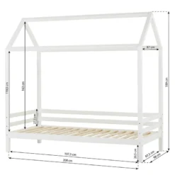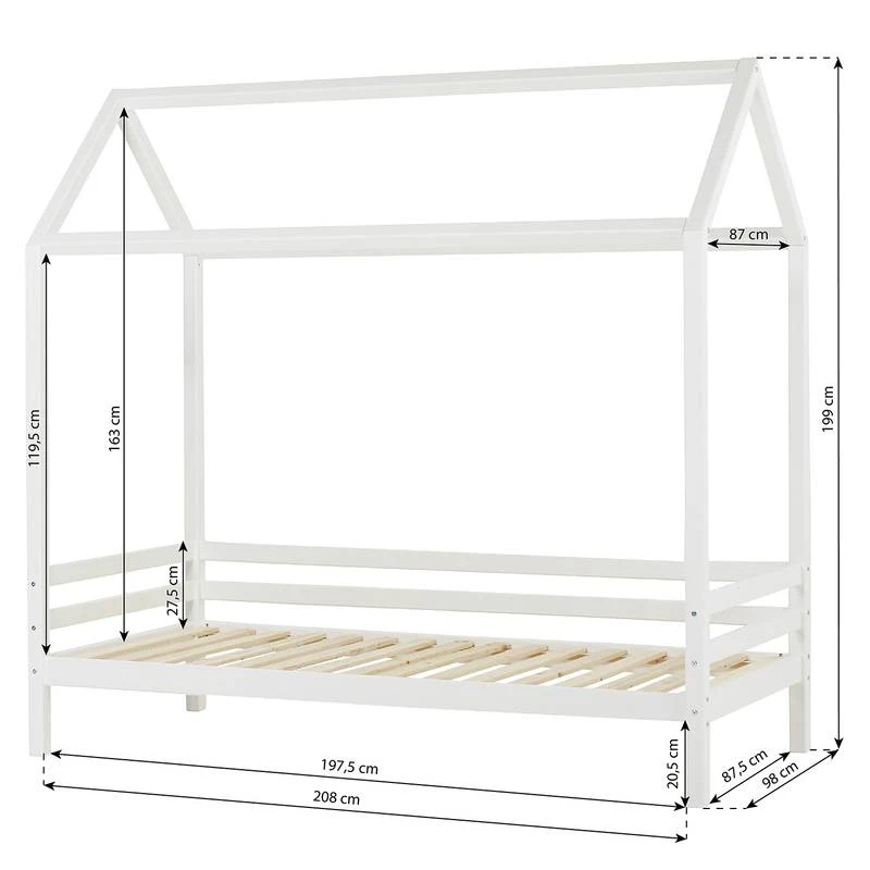 - Autres dimensions : Lit avec les dimensions 208 x 98 x 199 cm (L x P x H) pour matelas 90 x 200 cm et housse assortie, poteaux de lit en pin nordique massif : 52 x 52 mm