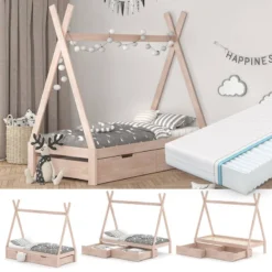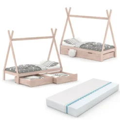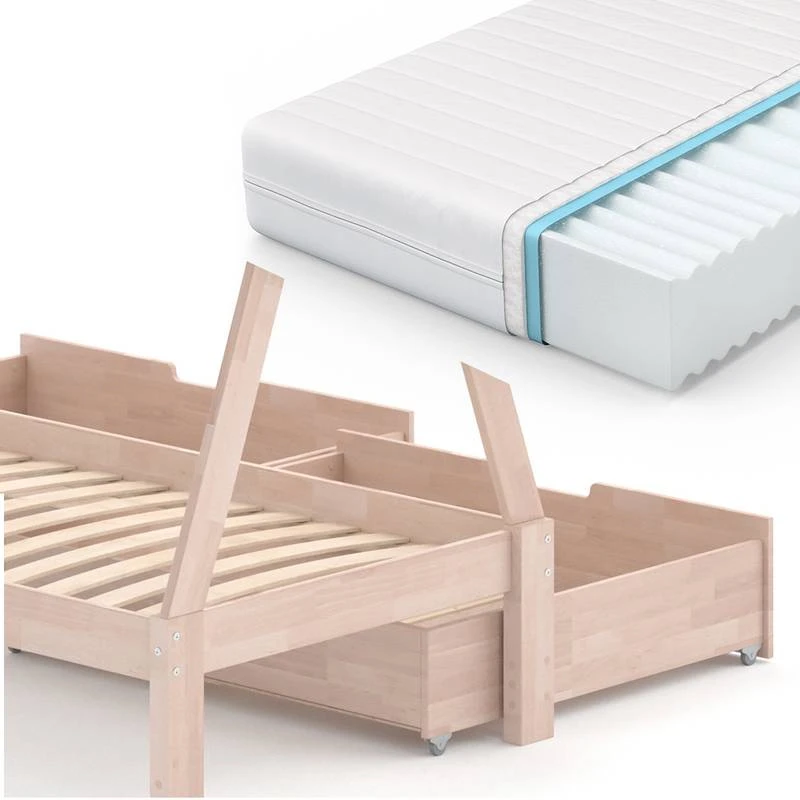 - Contenu de la livraison : ⹠1x lit pour enfant ⹠2x tiroirs ⹠1x matelas Décoration non incluse