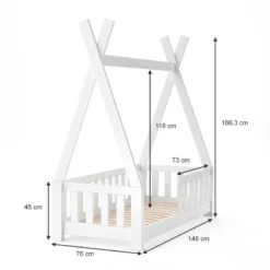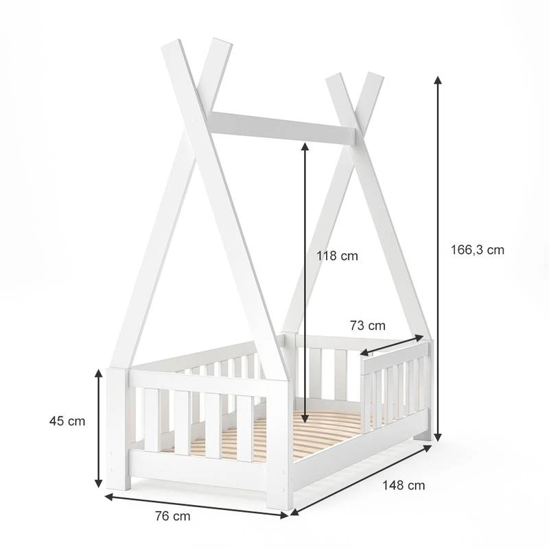 - Contenu de la livraison : ⹠1x lit cabane Tipi avec barriÚre anti-chute Décoration non incluse