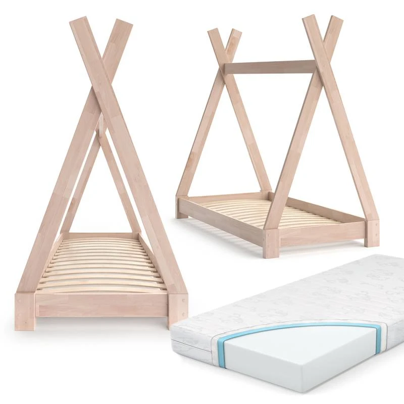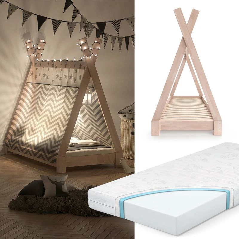 - Contenu de la livraison : ⹠1x lit cabane Tipi + matelasDécoration non incluse..