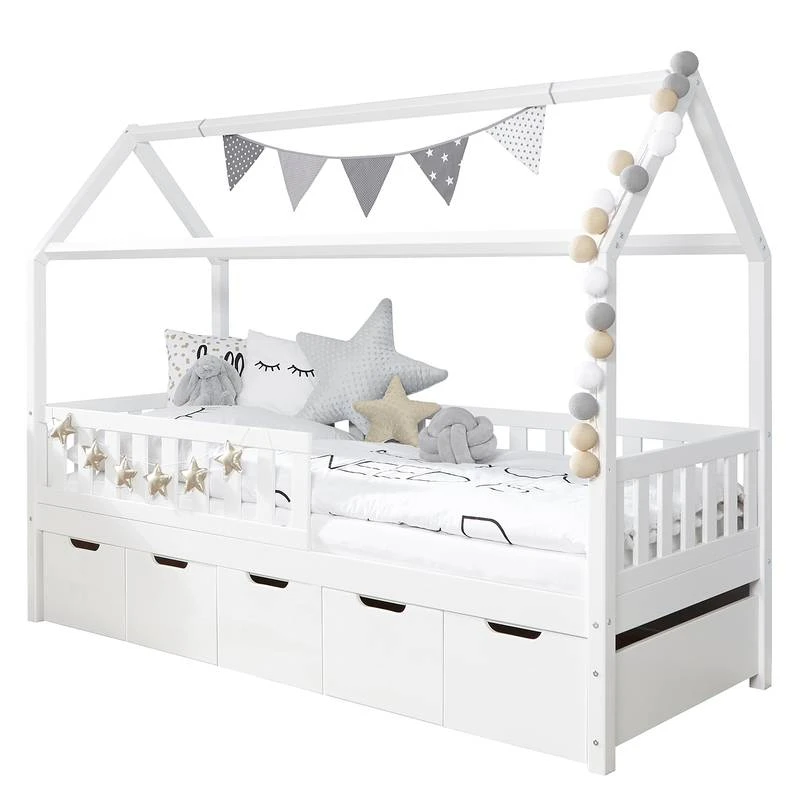 - Contenu de la livraison : Lit cabane avec 5 tiroirs de lit (sans matelas ni sommier, coussins ou décoration)