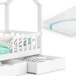 - Contenu de la livraison : ⹠1x lit enfant⹠2x tiroir⹠1x matelas Décoration non incluse
