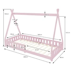 - Contenu de la livraison : 1x lit denfant Tipi avec protection contre les chutes, sommier Ă lattes et instructions de montage