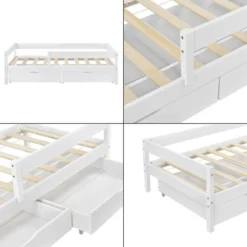 - Contenu de la livraison : 1 x lit enfant – 1 x sommier Ă lattes – 2 x tiroirs (le matelas, les oreillers, la couverture et les autres objets dĂ©coration ne font pas partie de l’offre)