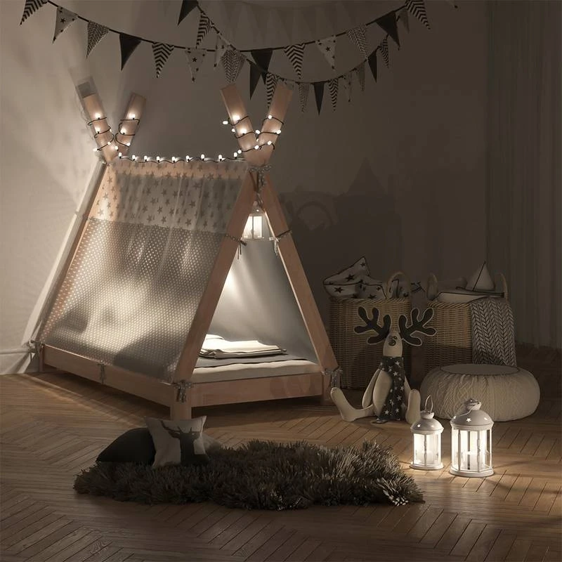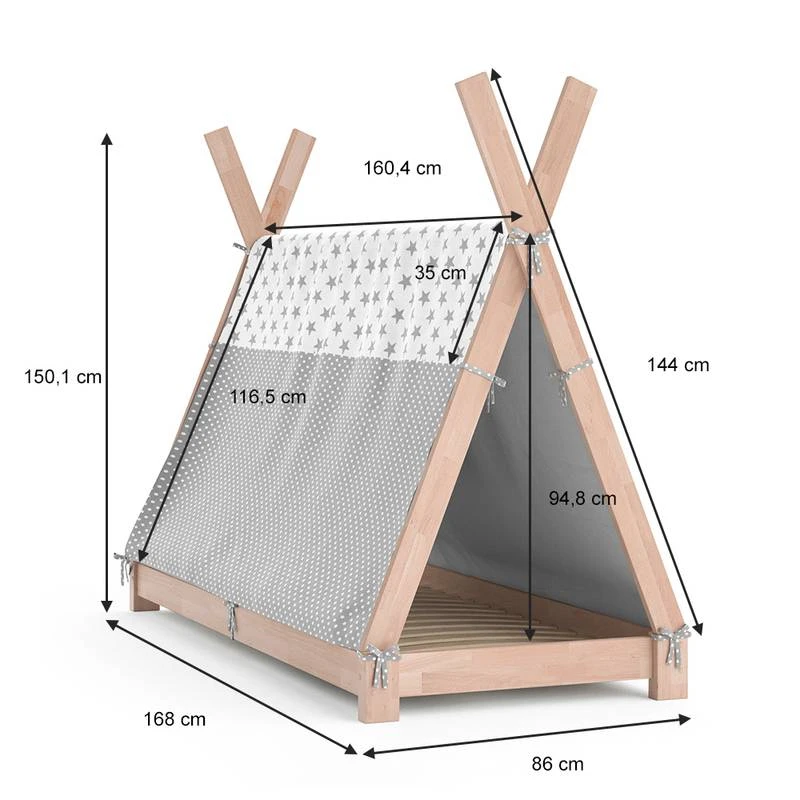 - Contenu de la livraison : Contenu de la livraison⹠1x lit cabane pour enfant tipi ⹠1x toile de litDécoration non incluseDecoración no incluida en el volumen de suministro