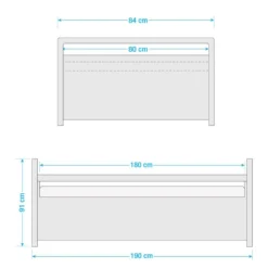 - Surface de couchage : 80 x 180 cm