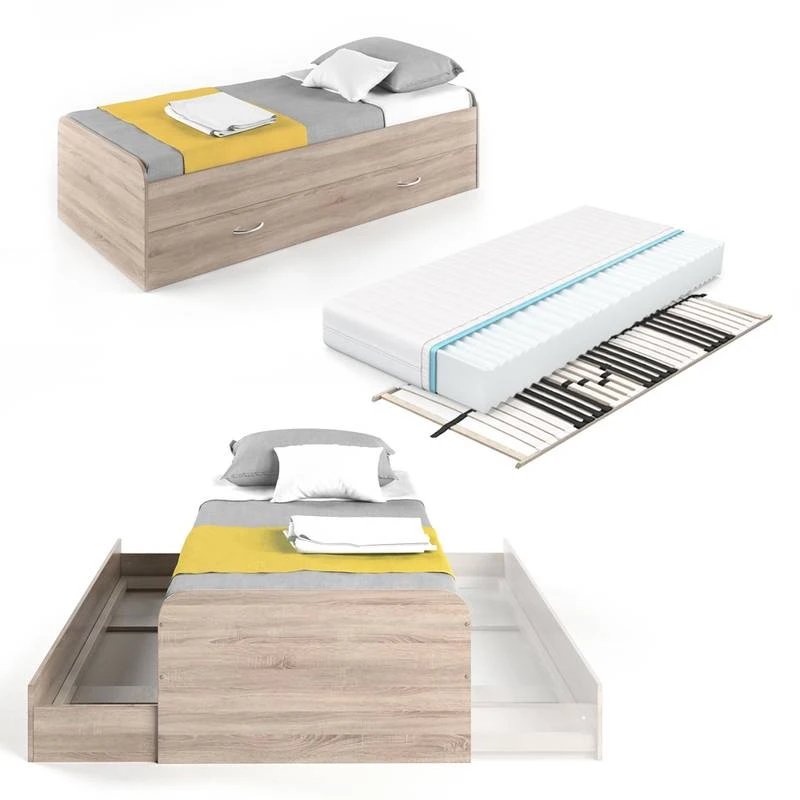 - Contenu de la livraison : ⹠Lit en kit / + sommier / + matelasDécoration non incluse