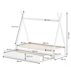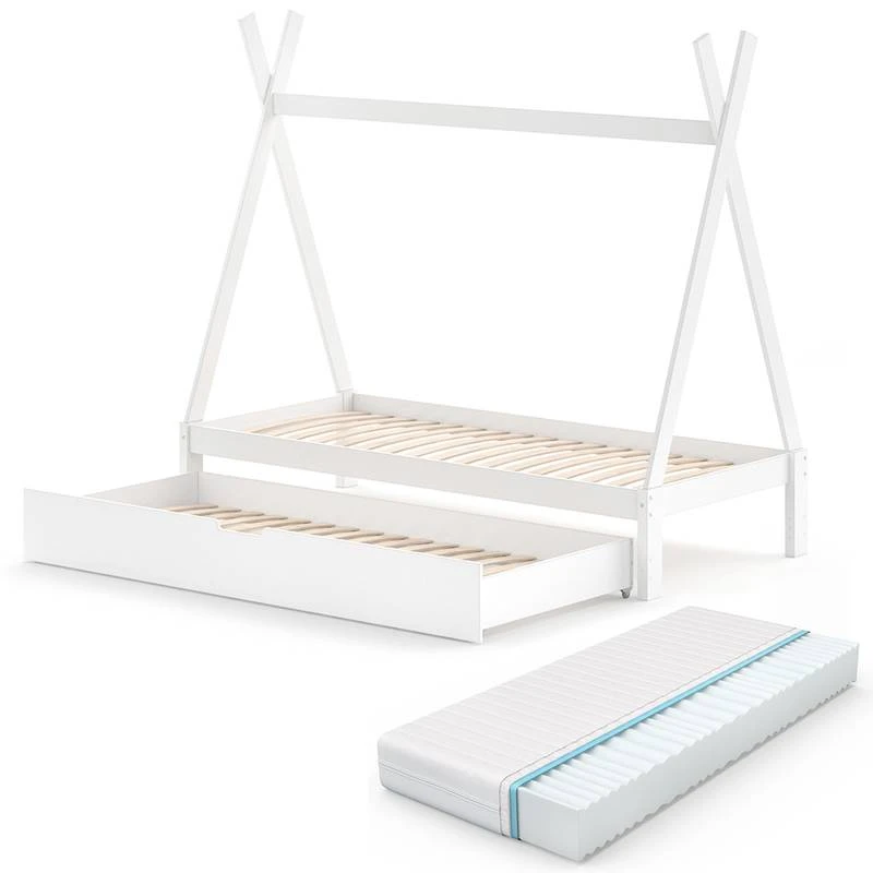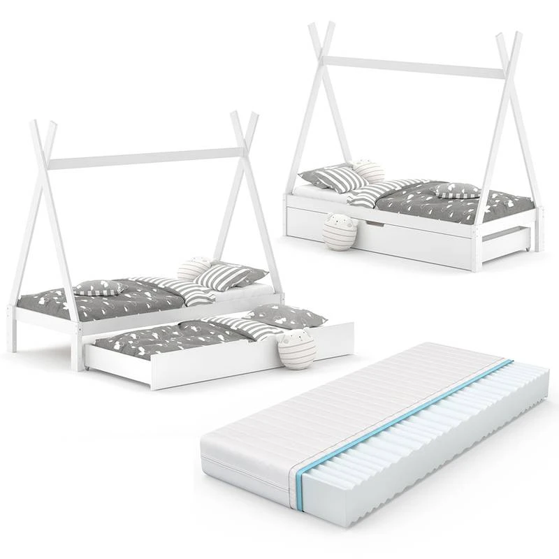 - Contenu de la livraison : ⹠1x lit pour enfant⹠1x tiroir de lit⹠1x matelasDécoration non incluse