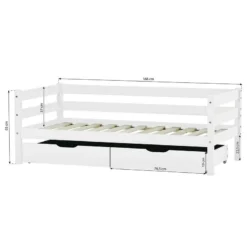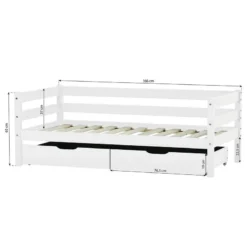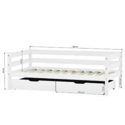 - Autres dimensions : Lit de 166 x 76 x 65 cm (LxLxH) pour un matelas de 70 x 160 cm. Pieds en pin nordique massif : 40 x 40 mm. Charge maximale : 60kg. Hauteur sous le lit : 22,5 cm