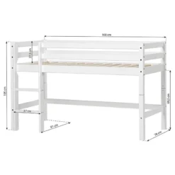 - Autres dimensions : Lit avec les dimensions 168 x 81 x 105 cm (L x P x H) pour matelas 70 x 160 cm, rideau assorti, poteaux de lit en pin nordique massif : 52 x 52 mm