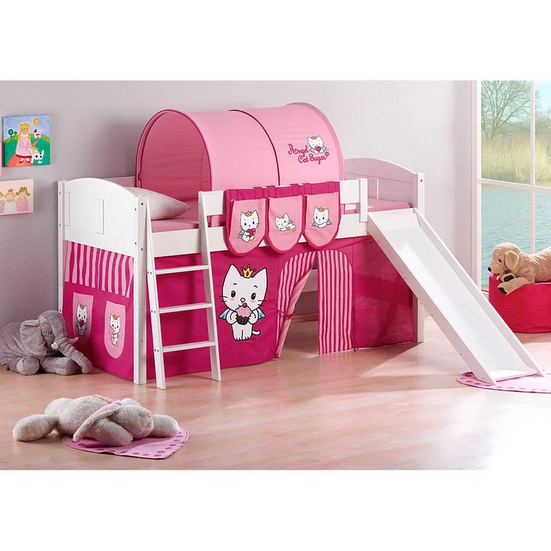 - Contenu de la livraison : Lit mezzanine IDA avec toboggan incluant 2 rideaux