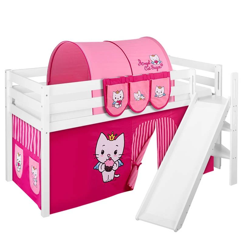 - Contenu de la livraison : Lit mezzanine JELLE avec toboggan et 2 rideaux inclus