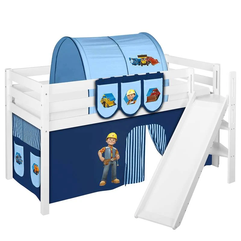 - Contenu de la livraison : Lit mezzanine JELLE avec toboggan et 2 rideaux inclus