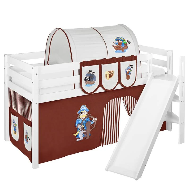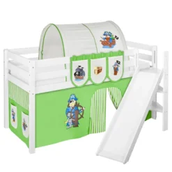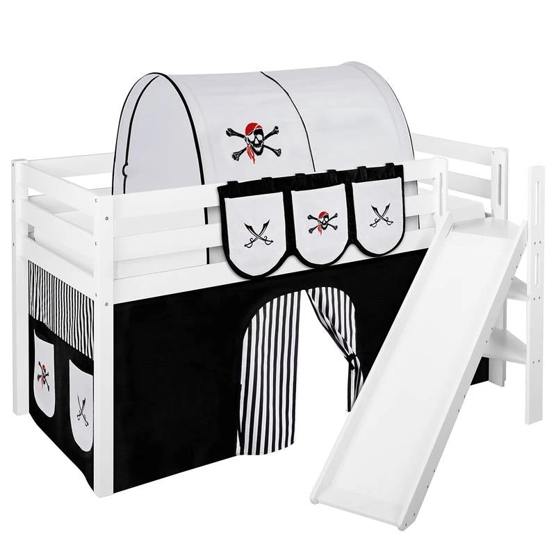 - Contenu de la livraison : Lit mezzanine JELLE avec toboggan et 2 rideaux inclus