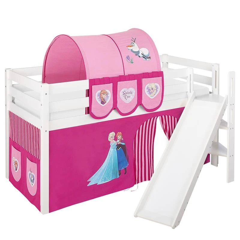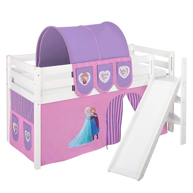 - Contenu de la livraison : Lit mezzanine JELLE avec toboggan et 2 rideaux inclus