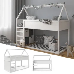 - Contenu de la livraison : ⹠1x Lit pour enfant (lit mezzanine) avec sommier à lattesDécoration non incluse