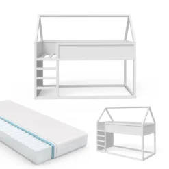 - Contenu de la livraison : ⹠1x lit pour enfant (lit mezzanine) avec sommier à lattes Décoration non incluse