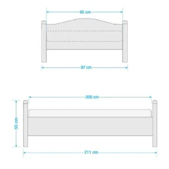 - Surface de couchage : 90 x 200cm