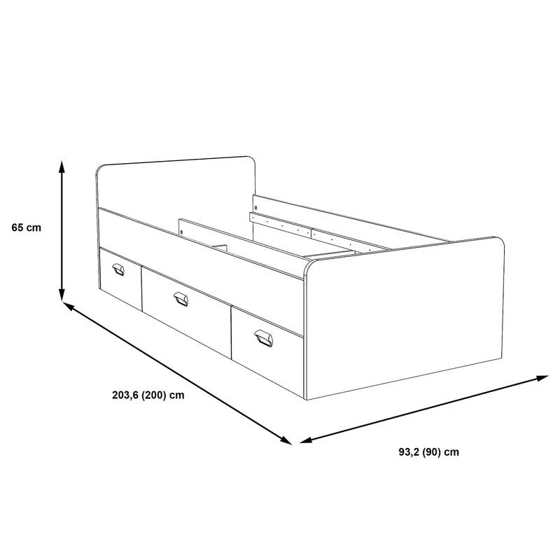 - Surface de couchage : 90 x 200cm