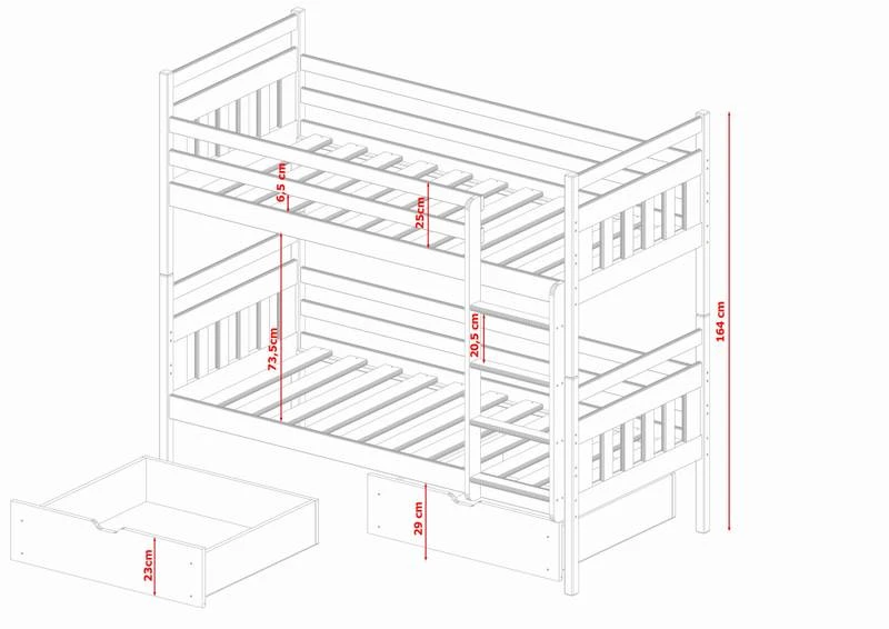 - Contenu de la livraison : Lit superposé x 1 / tiroirs : Inclus x 2 / Armoires : Inclus / Matelas : Non inclus dans le set