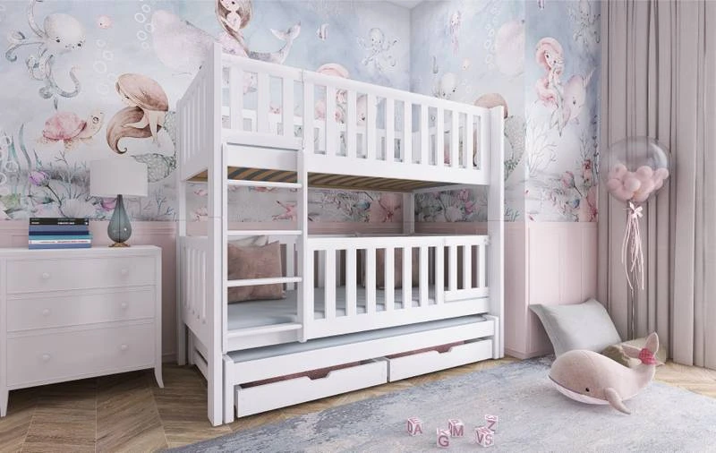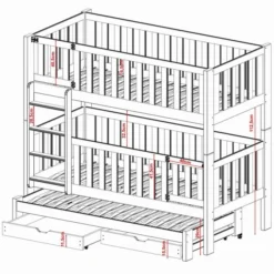 - Contenu de la livraison : Lit superposé x 1 / tiroirs : Inclus x 2 / Armoires : Inclus / Matelas : Non inclus dans le set