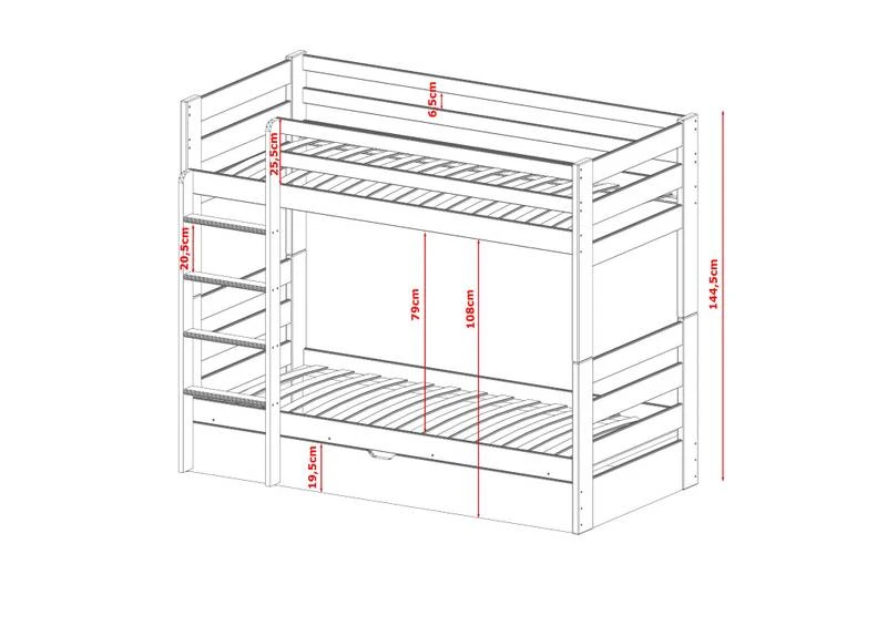 - Contenu de la livraison : Lit superposĂ© x 1 / tiroirs : Inclus x 1 / Armoire : – / Matelas : Non inclus dans le set
