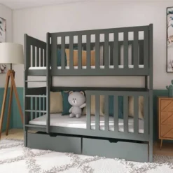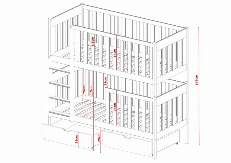 - Contenu de la livraison : Lit superposé x 1 / tiroirs : Inclus x 2 / Armoires : Inclus / Matelas : Non inclus dans le set