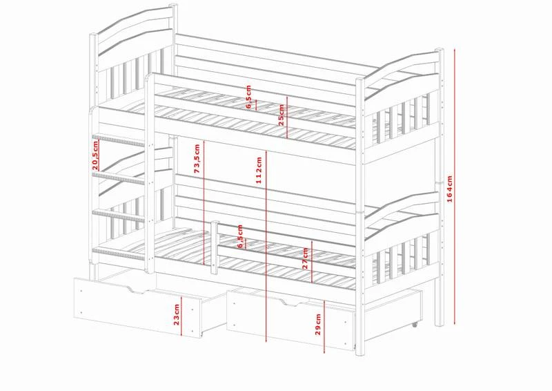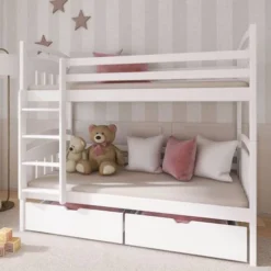 - Contenu de la livraison : Lit superposé x 1 / tiroirs : Inclus x 2 / Armoires : Inclus / Matelas : Non inclus dans le set