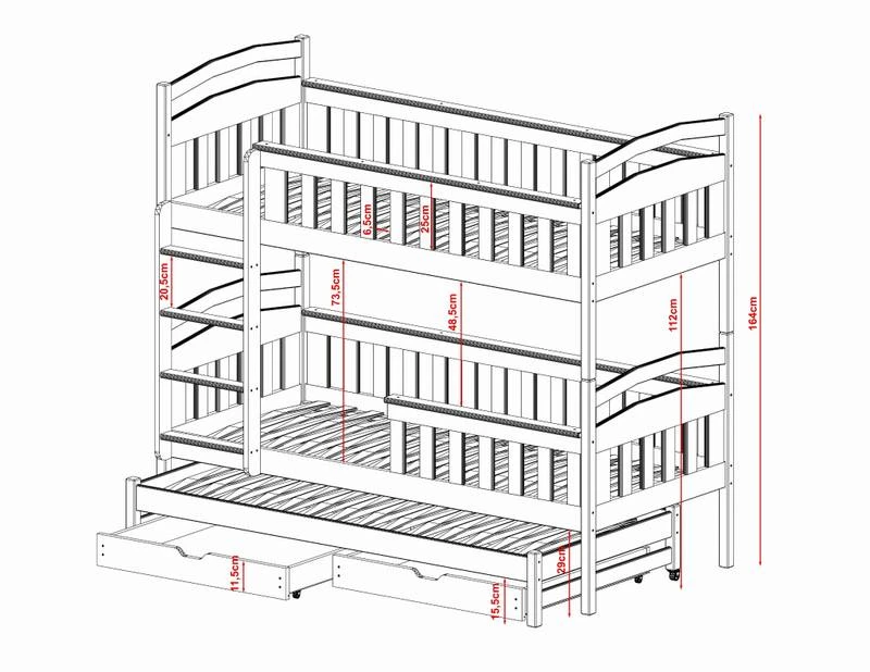 - Contenu de la livraison : Lit superposé x 1 / tiroirs : Inclus x 2 / Armoires : Inclus / Matelas : Non inclus dans le set