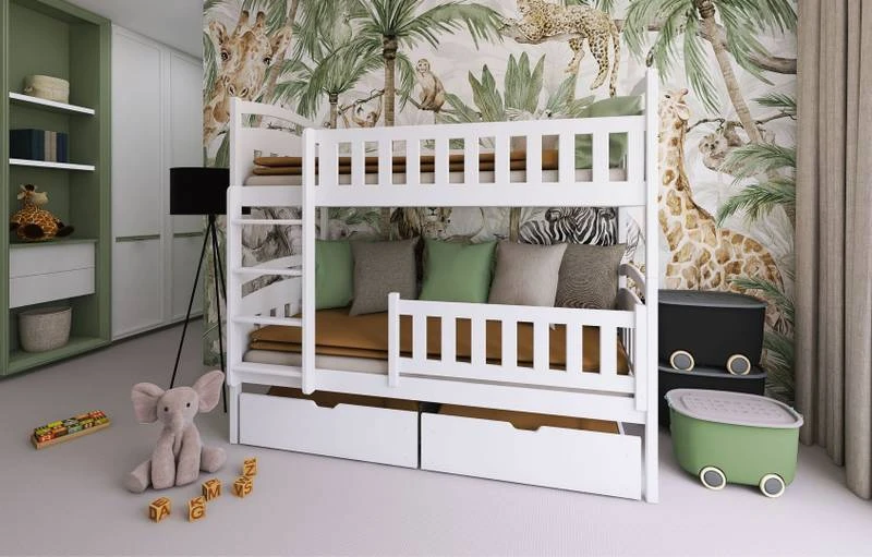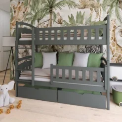 - Contenu de la livraison : Lit superposé x 1 / tiroirs : Inclus x 2 / Armoires : Inclus / Matelas : Non inclus dans le set