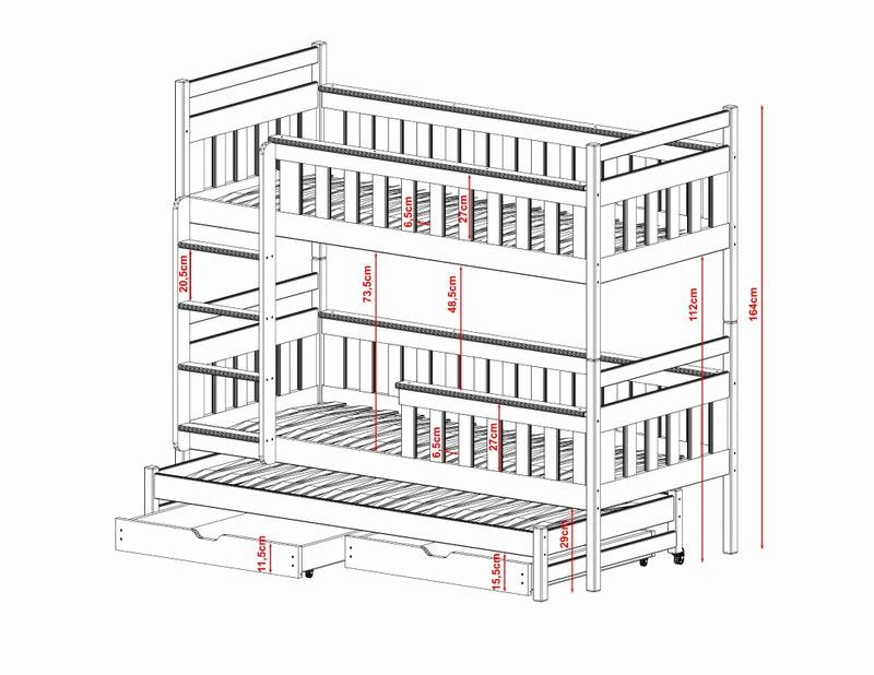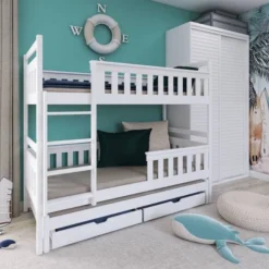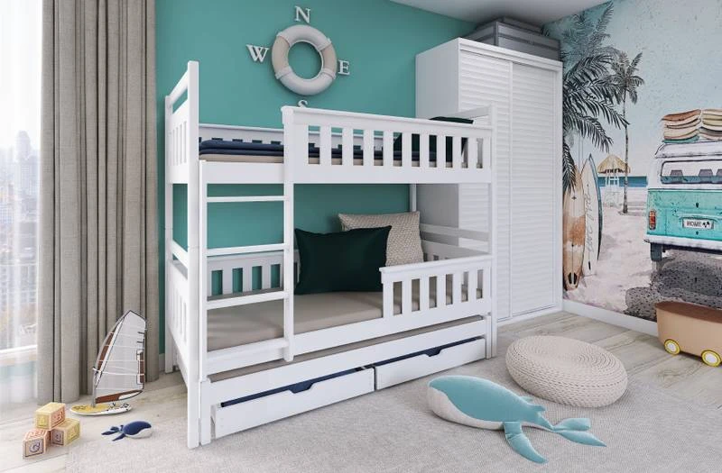 - Contenu de la livraison : Lit superposé x 1 / tiroirs : Inclus x 2 / Armoires : Inclus / Matelas : Non inclus dans le set