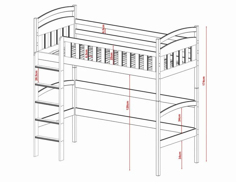 - Contenu de la livraison : Lit mezzanine x 1 / tiroirs : – / Armoire : – / Matelas : Non inclus dans le set