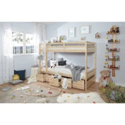 - Contenu de la livraison : Lit superposés avec 5 tiroirs de lit (sans matelas ni sommier à lattes enroulables, coussins ou décoration)
