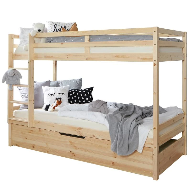 - Contenu de la livraison : Lit superposés avec lit d’appoint (sans matelas, sommier à lattes enroulables, coussins ni décoration)