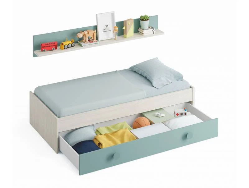 - Contenu de la livraison : 1 x Lit 1 tiroir sans sommier avec étagÚre murale L201 cm