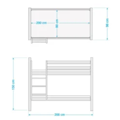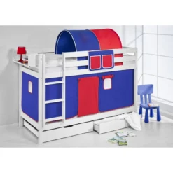 - Contenu de la livraison : Lits superposés JELLE Blanc 90 x 200 cm incluant 2 rideaux et 2 sommiers à lattes