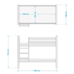 - Contenu de la livraison : Lits superposés JELLE Blanc 90 x 190 cm incluant 2 rideaux et 2 sommiers à lattes