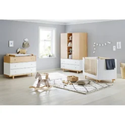 3 pièces : lit de bébé évolutif, commode à langer large et armoire grande